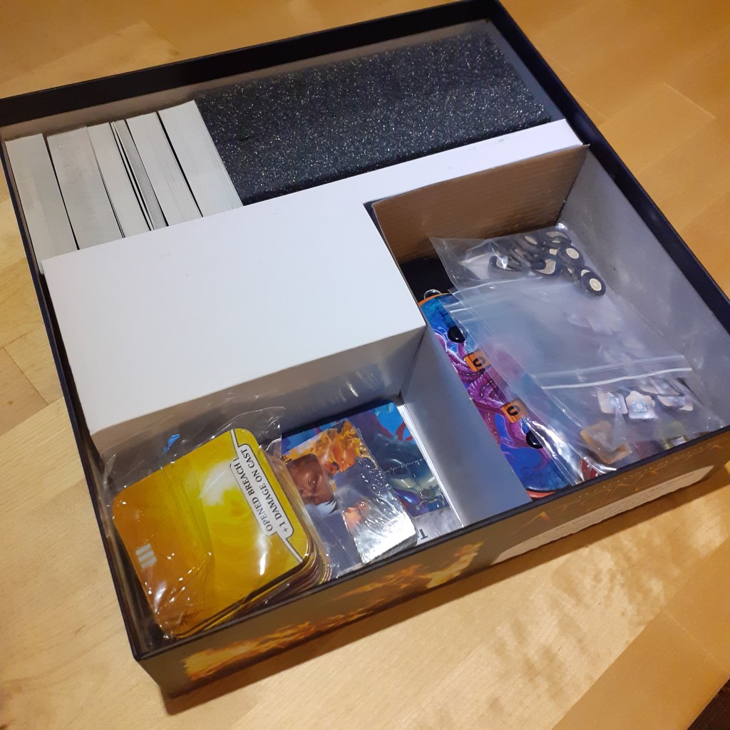 My partner has had this game on his list for quite some time. We finally made the purchase and I was pleasantly surprised with the whole experience. It’s a compelling mix. There’s the deckbuilding of Dominion andthe co-operative team-up to fight the Big Bad of Marvel Champions with an apocalypse fantasy setting.