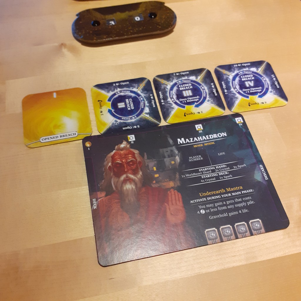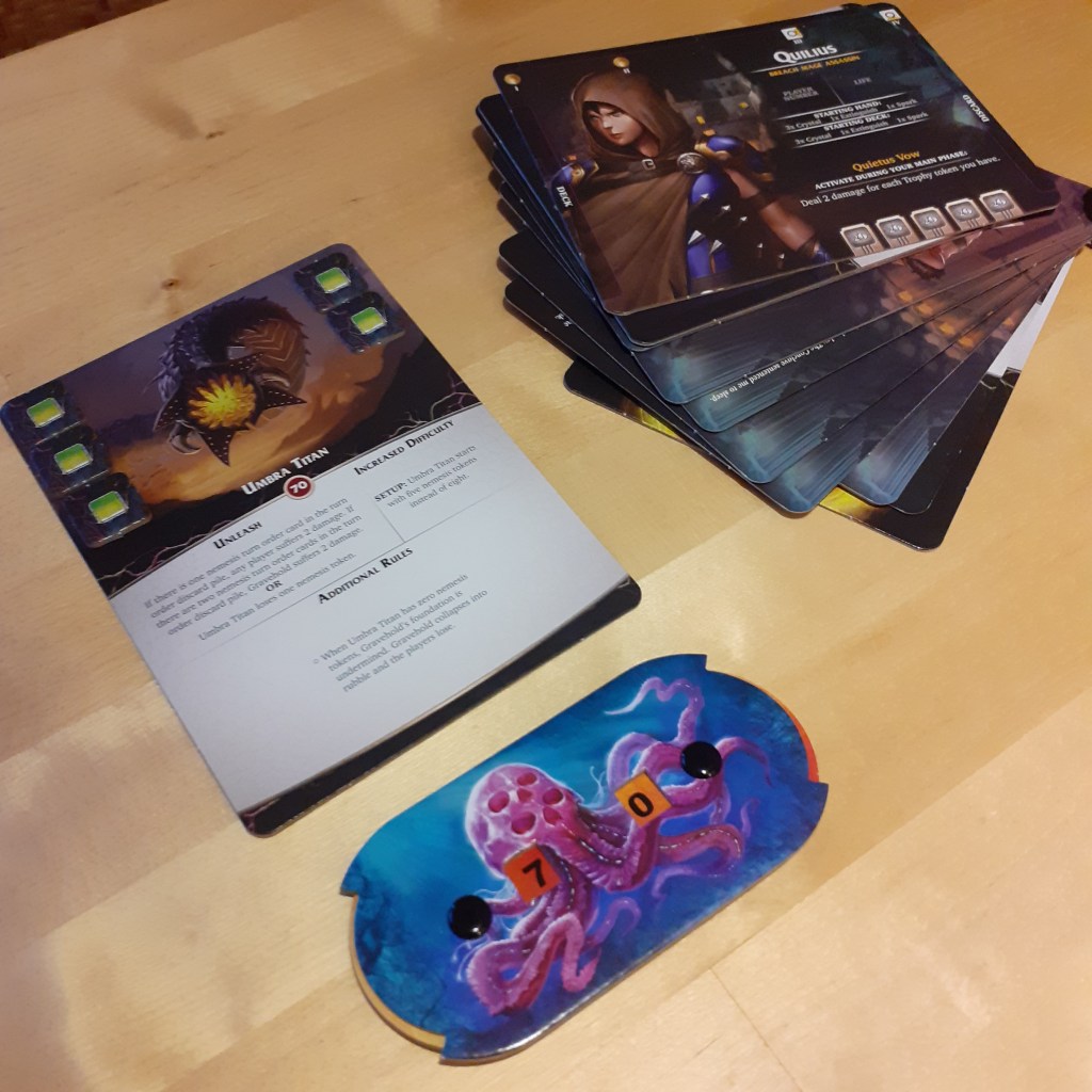 The game has a good pace. I was expecting the deep, dark fantasy theme to mean there would be a variety of moderately complex mechanics and difficult choices that slowed the pace of gameplay right down. Instead it felt much more like a marketplace deckbuilder, where the test of your deck’s strength was by how effectively the monster was slain, rather than how effectively your deck worked against the other players. All the makings of a challenging game are there with multiple choices to be made each turn that inevitably are a compromise on other possibilities. There is a lack of shuffling in the game, meaning the card draw order can be dictated by the player themselves, adding a strategic depth to a mechanic that is normally more luck based.